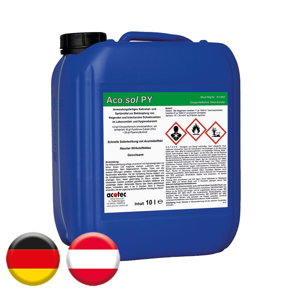 | Dosierung | kriechende Insekten: 6 l für 1000 m³ fliegende Insekten: 1 l für 1000 m³ Spritzverfahren: 20 ml/m² |