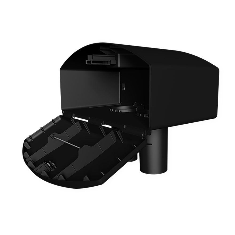 ۰ die einzigartigen, patentierten, nach unten gerichteten Röhren locken Ratten auf natürliche Weise an und ermöglichen es ihnen, in die Box hinaufzuklettern und so Zugang zu den darin befindlichen Rodentiziden oder Fallen zu erhalten