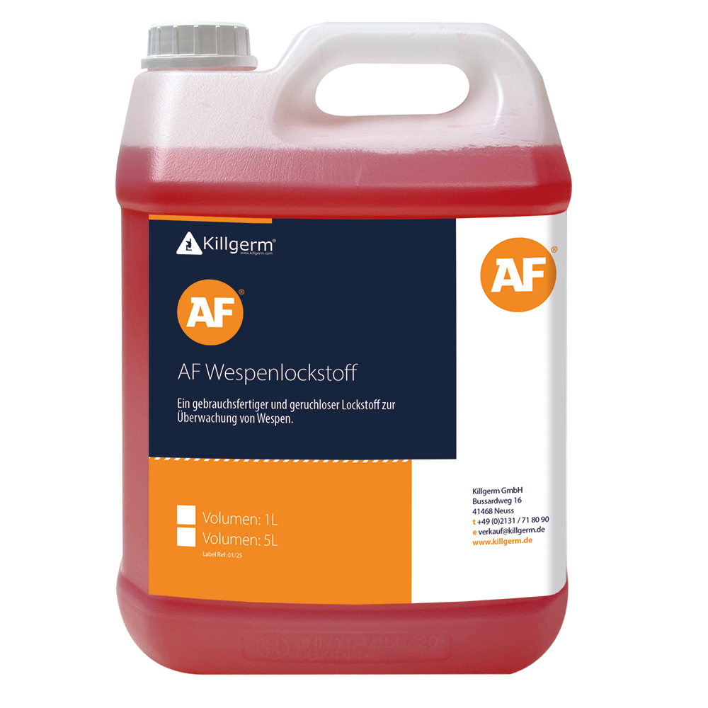 AF WESPENLOCKSTOFF ist nicht ausreichend wirksam für Bekämpfungsmaßnahmen. Wird ein Befall mit Wespen festgestellt, muss die Bekämpfung mit geeigneten Mitteln durchgeführt werden. Bitte beachten Sie dazu den Beipackzettel.