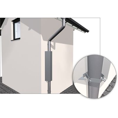 Die Anbauringe sind ab sofort nicht mehr in Edelstahl, sondern aus verzinktem Stahlblech, d.h. das Schild ist nicht mehr bei Kupferrinnen zu verwenden.