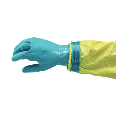 Die einfache Lösung für das Befestigen von Chemikalienschutzhandschuhen an Overalls.