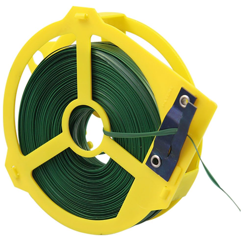 Grüne, kunststoffummantelte Bindestreifen sind für eine dauerhafte Verwendung - auch im Freien - geeignet. Der Draht hat einen Durchmesser von 0,45 mm. Erhältlich in 100 m und 500 m auf einer praktischen Spenderspule.