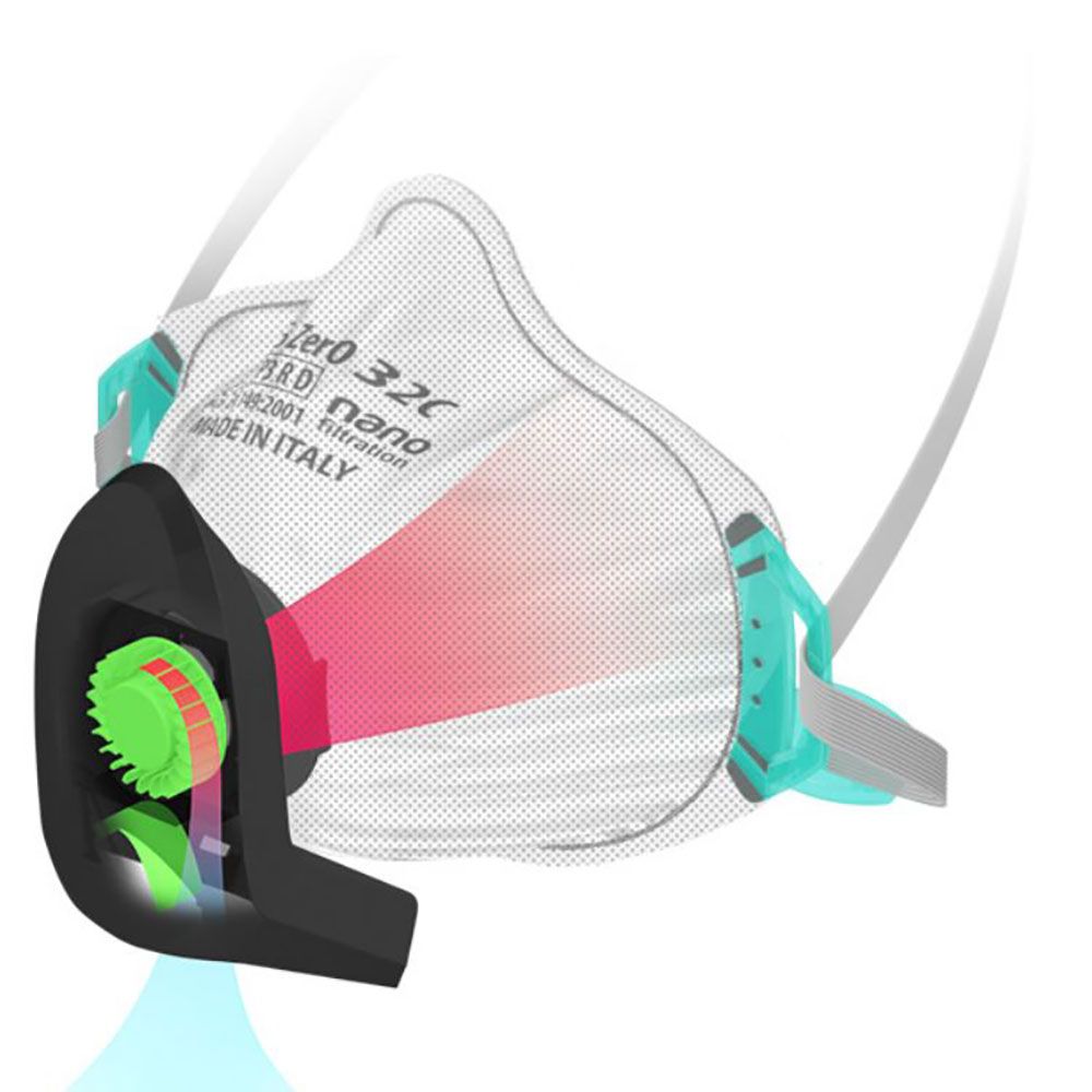 • EOLO-Ausatemventil: Lenkt die ausgeatmete Luft nach unten und reduziert die Ausbreitung von Viren.