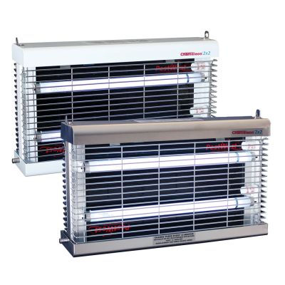 Die Population kleinerer Fliegen steigt auf und setzt so Arbeitsplätze und Ansehen in Gefahr. Das doppelseitige Chameleon® 2x2 schützt große offene Bereiche und fängt Fluginsekten aller Größen. Genau die kleinere Insekten sind diejenigen, die leicht der herkömmlichen Geräten entgehen können.