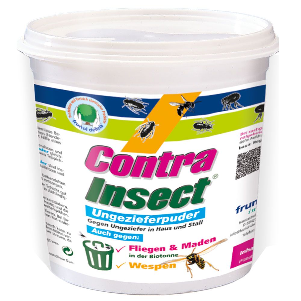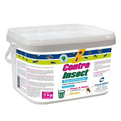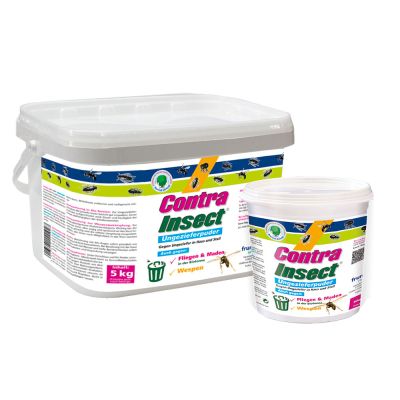 Contra Insect® Ungezieferpuder besitzt eine starke Kontakt- und Atemwirkung auf schädliche Insekten und Milben im Haus-, Hof- und Stallbereich. Es wirkt auch als Fraßgift. Vorzugsweise wird das Puder zur Bekämpfung von Flöhen, Vogelmilben, Asseln, Schaben, Silberfischchen, Kugelkäfern usw. verwendet. Es verfügt über ein breites Wirkungsspektrum und eine lange Wirkungsdauer.