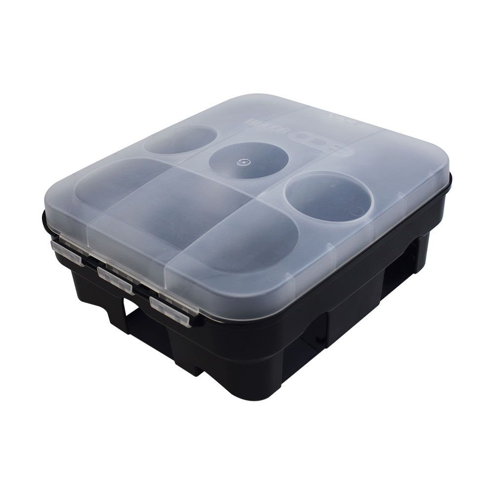 Das spezielle Einsatzfach bietet Platz für Köderblöcke oder Rattenschlagfallen (T-Rex oder Kness Ratte).