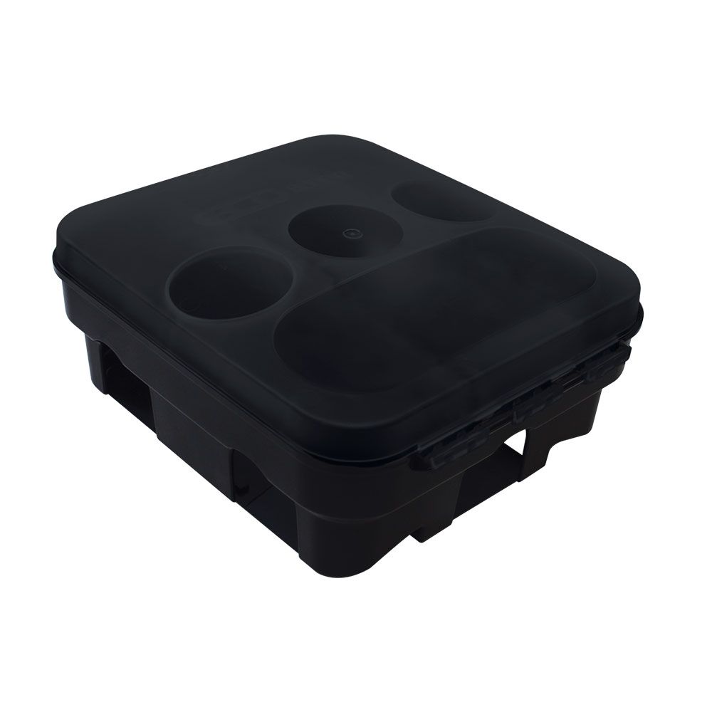 Erhältlich in den Ausführungen komplett schwarz oder schwarzer Körper, transparenter Deckel.