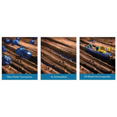 Die Partix-Technologie basiert auf der Einbettung des Wirkstoffes in größere feste Partikel. Die Partikel sind ungefähr 10-mal größer als in herkömmlichen Formulierungen (z.B. Suspensionskonzentrate (SC). Auf diese Weise wird verhindert, dass der Wirkstoff in Mikrospalten poröser Oberflächen versickert - das Resultat: die Bioverfügbarkeit auf diesen komplexen Oberflächen wird deutlich erhöht. K-Othrine® Partix ist ideal anwendbar in Kombination mit Aquapy®, wobei Aquapy® die Schädlinge aus den Verstecken treibt und K-Othrine® Partix diese bekämpft.