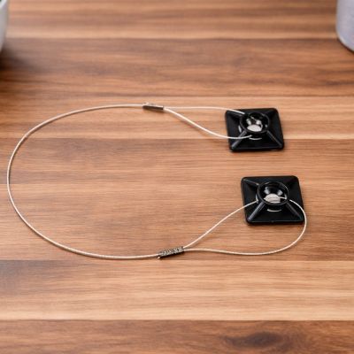 1 Pack (10 Klebeanker) mit jeweils 2 Klebepads sowie Verbindungsseil aus Edelstahl zum Befestigen von Köderstationen in der Schädlingsbekämpfung.