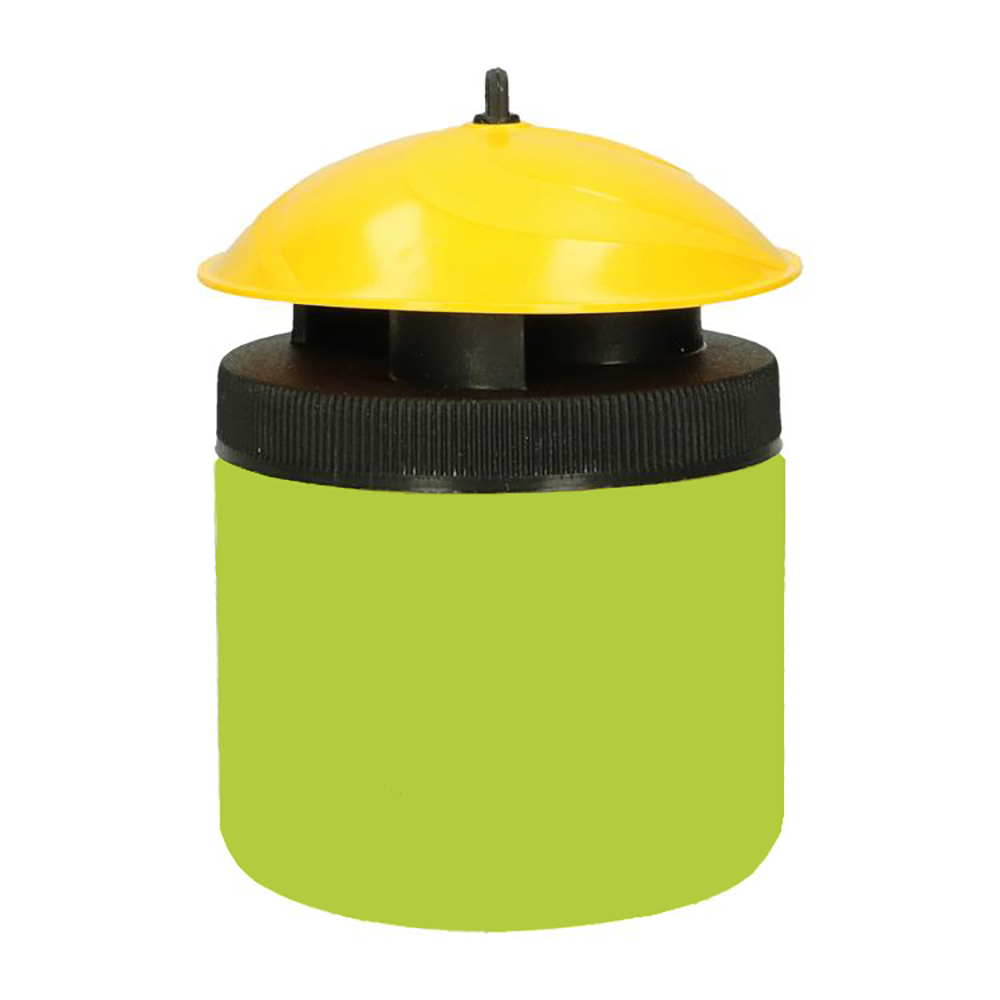 Ein transparenter Behälter erleichtert die Kontrolle. Der Behälter ist UV- und witterungsbeständig und hat eine Reichweite von 2 bis 3 Metern.