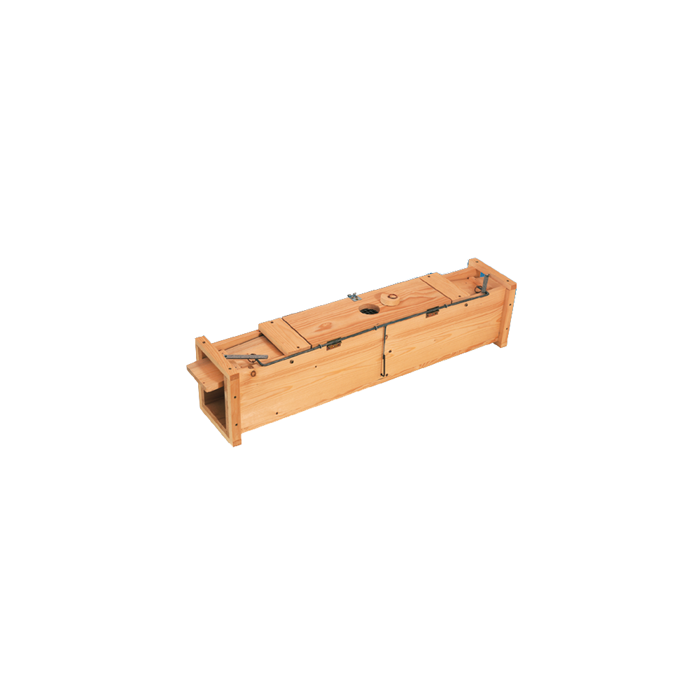 Diese Marderfalle ist aus Vollholz gefertigt und bietet dem Marder einen natürlichen Unterschlupf.