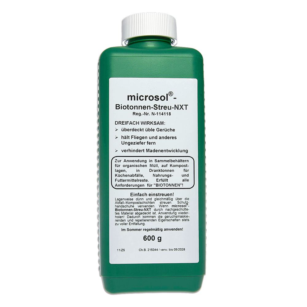 Ein vielseitiges Granulat zur Geruchs- und Schädlingskontrolle, das gleich drei Funktionen vereint: Es neutralisiert unangenehme Gerüche, schreckt Fliegen sowie anderes Ungeziefer ab und hemmt die Bildung von Maden.