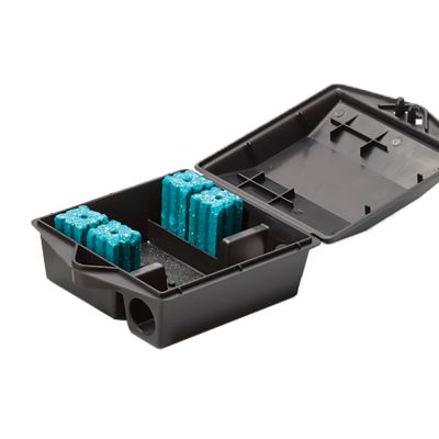 Der Deckel der Protecta Maus lässt sich für eine einfach und schnelle Wartung seitlich öffnen. Zu öffnen mit Protecta® LP & RTU Schlüssel gilt sie als manipulationssichere Köderstation.