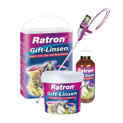Durch eine neue Formulierungstechnologie kann mit einem geringeren Wirkstoffgehalt als bei herkömmlichen Produkten für diesen Bereich bei mindestens gleicher Wirksamkeit gearbeitet werden. Zudem wird eine Wirkstoffausgasung vor Köderaufnahme, auch durch den Einfluss von Bodenfeuchtigkeit, verhindert. Dies bedeutet eine deutliche Verringerung der Köderscheu durch Mäuse und einen zusätzlichen Schutz für den Anwender. Die volle Wirkung und Attraktivität bleibt bis zur Aufnahme durch die Mäuse erhalten. Applikationshilfe (Ratron Appli-Gun) optional erhältlich.