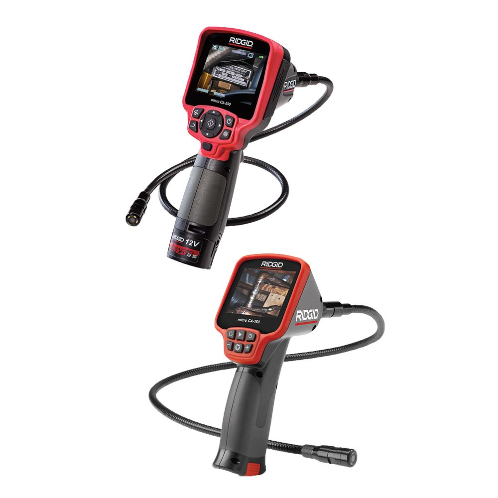 Die Inspektionskamera von Ridgid erleichtert die Durchführung visueller Inspektionen an schwer zugänglichen Stellen. Die Kamera ist serienmäßig mit einem halbflexiblen 90cm langen Kabel mit 17mm Kamerakopf ausgestattet. Die Kabelreichweite kann bis auf 9 Meter erweitert werden. Wasserdicht bis 3 Meter Tiefe.