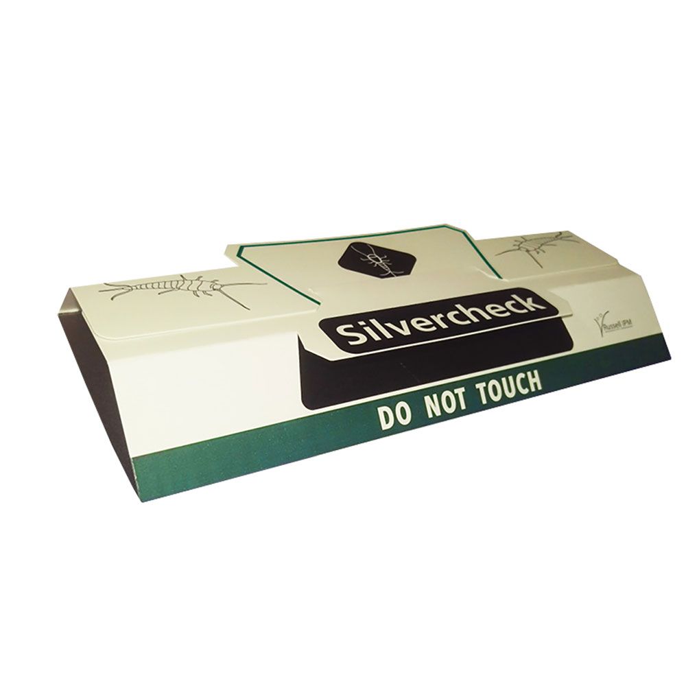 Diese gebrauchsfertige, diskrete Falle ist eine in sich geschlossene Pappstation mit einem starken Klebeboden und einem einzigartigen Köder für Silber- und Papierfischchen.