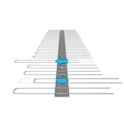 Die Spitzen haben einen Durchmesser von 2,0 mm und sind alle 25 mm auf einer Basislänge von 1000 mm angebracht. Die Bandbreite beträgt 18 mm und ist 0,8 mm stark.
