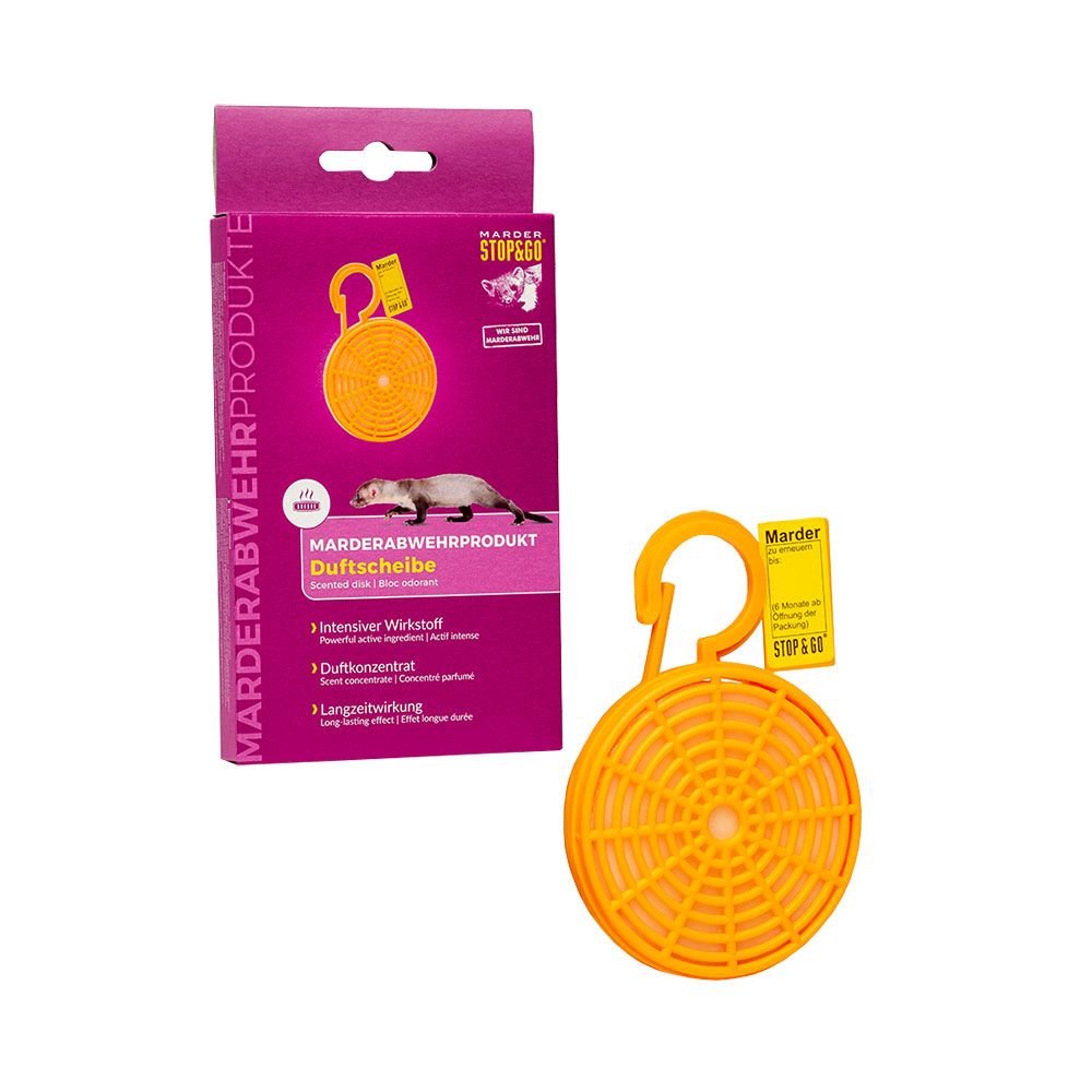 Die Duftscheibe riecht für den Marder nach „gefährlichem Feind“. Die einfache Befestigungsvorrichtung mit praktischem Haken ermöglicht eine individuelle Anbringung. Universell einsetzbar in Auto, Haus, Garten oder Carport. Die große Verdunstungsfläche sorgt für eine intensive Duftabgabe. Mit nur einer Duftscheibe ist es möglich, den gesamten Motorraum zu schützen.