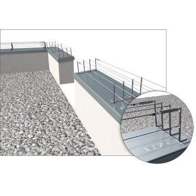 Durch Edelstahlseile (Nirosta-Litze), die mit Hilfe von Federn und Klemmhülsen an den Trägerelementen gespannt werden, wird das Absitzen der Tauben wirksam verhindert.