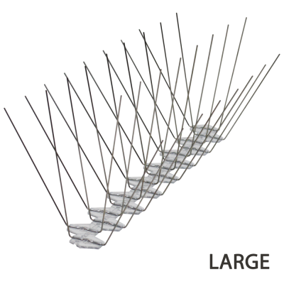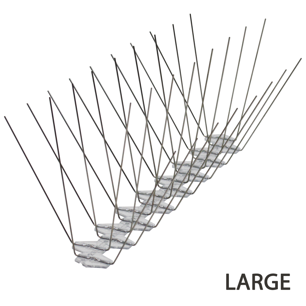 VOLASTOP LARGE sind Vogelabwehr-Spikes der ECOBIRDS-Produktreihe. Die Spikes sind auf einer 33 cm langen Basis aus Polycarbonat strukturiert, das mit UV-beständigen Zusatzstoffen behandelt wurde. Jede Basis verfügt über 32 Stifte (entspricht 96 Stiften pro Meter) mit stumpfen Spitzen aus federhartem Edelstahl. Sowohl die Länge der Stifte als auch die Breite der Vorrichtung machen dieses Modell besonders effektiv gegen die Zielschädlinge.