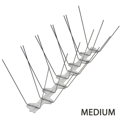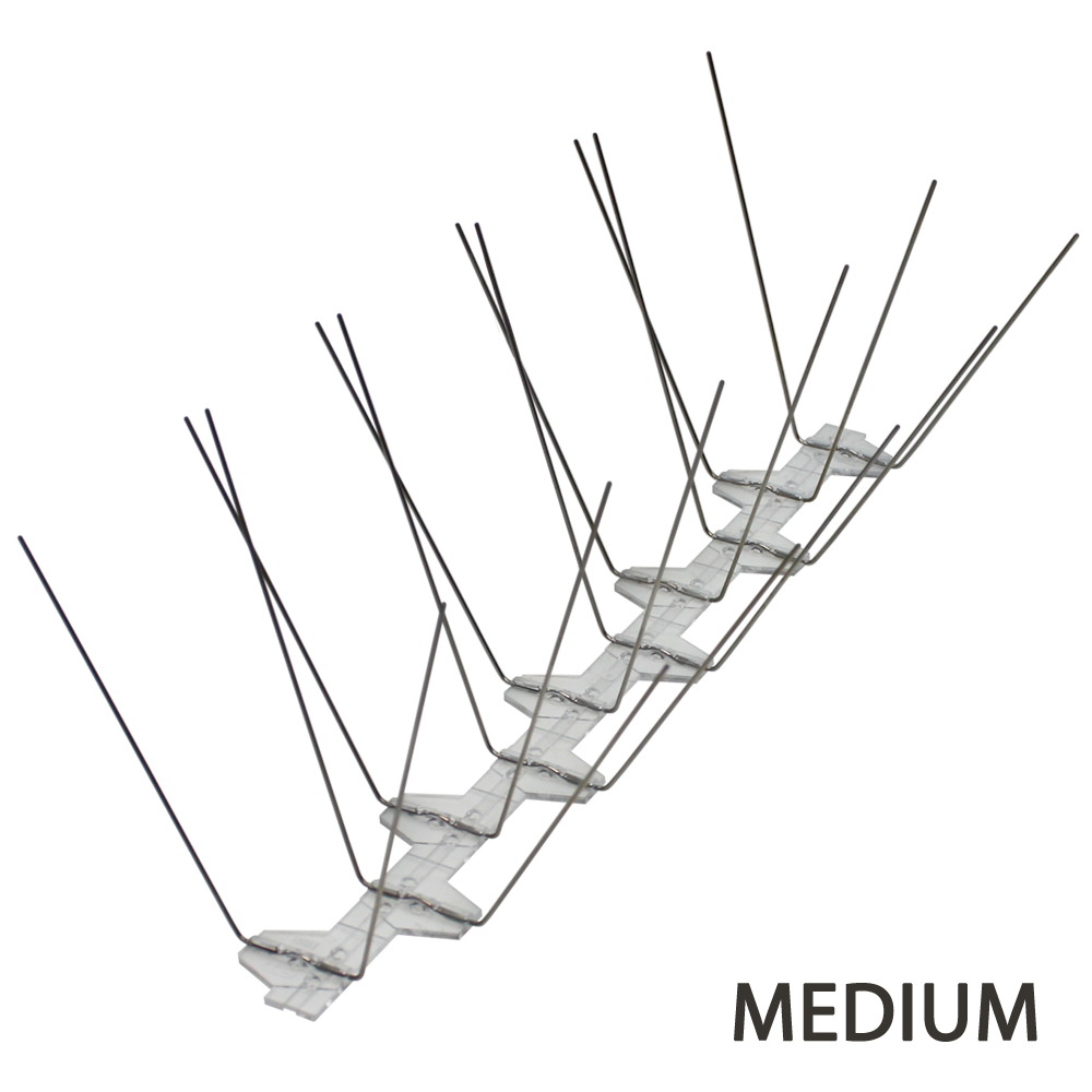VOLASTOP MEDIUM sind Vogelabwehr-Spikes der ECOBIRDS-Produktreihe. Die Spikes sind auf einer 33 cm langen Basis aus Polycarbonat strukturiert, die mit UV-beständigen Zusatzstoffen behandelt wurde. Jede Basis hat 20 Stifte (also 60 Stifte pro Meter) mit stumpfen Spitzen aus federhartem Edelstahl. Sowohl die Länge der Stifte als auch die Breite des Dorns machen dieses Modell besonders effektiv gegen die Zielschädlinge.