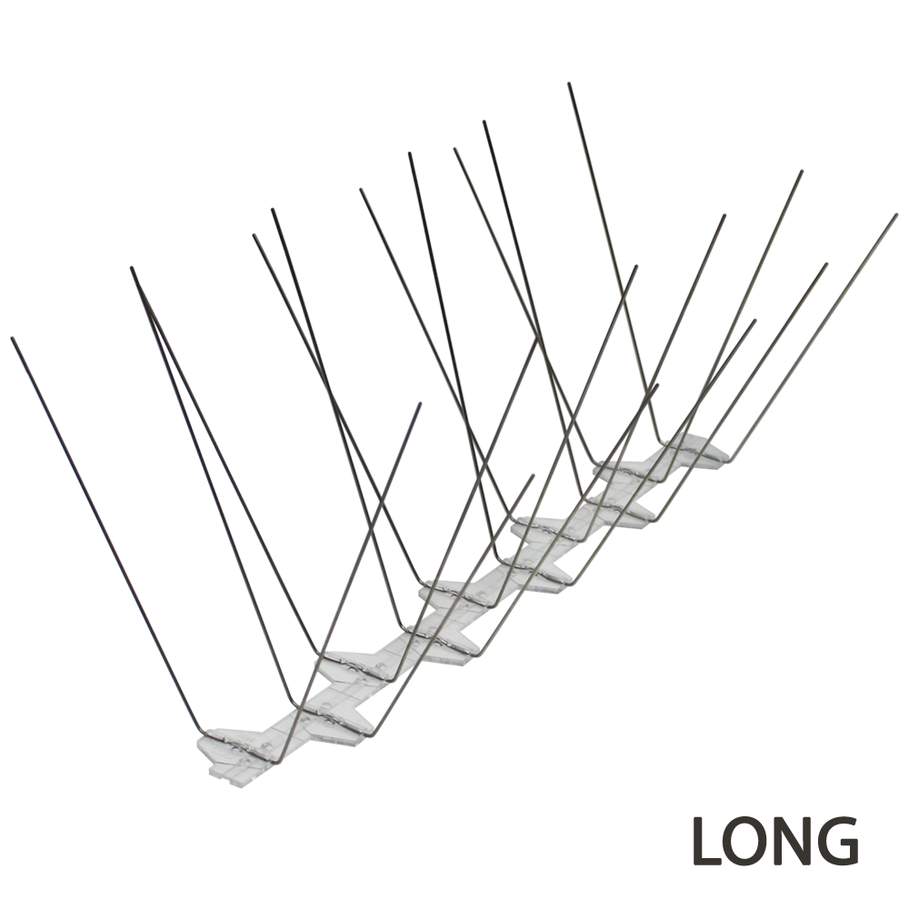 VOLASTOP LONG sind Vogelabwehr-Spikes der ECOBIRDS-Produktreihe. Die Spikes sind auf einer 33 cm langen Basis aus Polycarbonat strukturiert, das mit UV-beständigen Zusatzstoffen behandelt wurde. Jede Basis verfügt über 20 Stifte (entspricht 60 Stiften pro Meter) mit stumpfen Spitzen aus federhartem Edelstahl. Sowohl die Länge der Stifte als auch die Breite der Vorrichtung machen dieses Modell besonders effektiv gegen Möwen.
