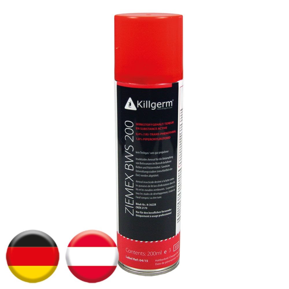 Anwendungsfertiges, in 10-15 Minuten trocknendes Spezialaerosol zur Bekämpfung von Bettwanzen im Bereich von Betten und Polstermöbeln. Sämtliche Entwicklungsstadien (inkl. Eier) werden zuverlässig eliminiert.